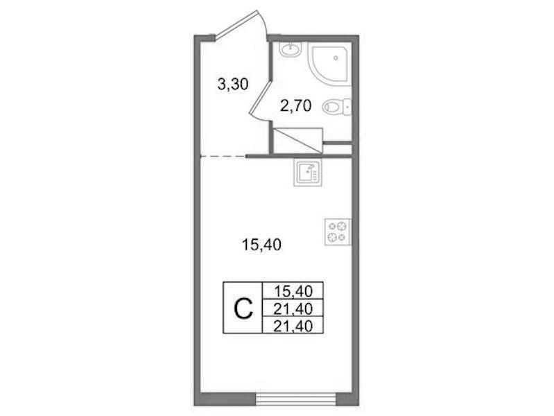 Квартира-студия на 18-ом этаже 21,4 кв.м