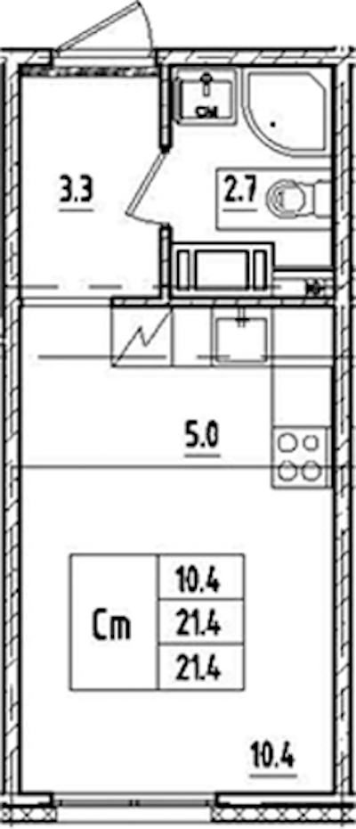 - Площадь21,4 м2