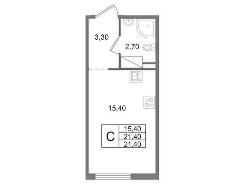 • Площадь21,4 м2