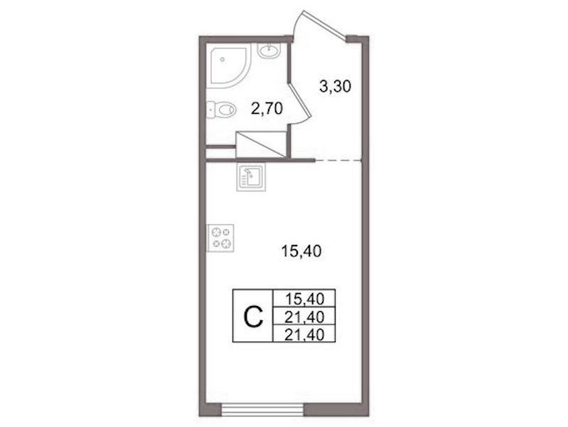Квартира-студия на 18-ом этаже 21,4 кв.м