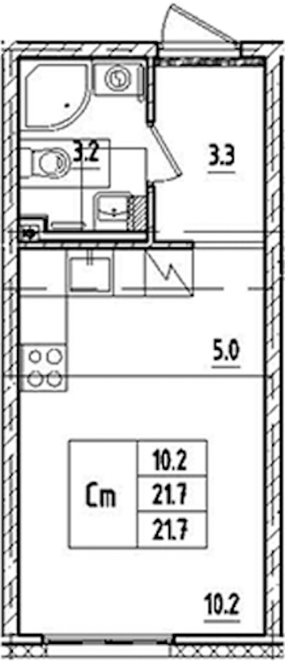 Квартира-студия на 2-ом этаже 21,7 кв.м