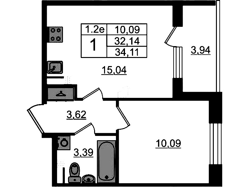 • Площадь32,14 м2