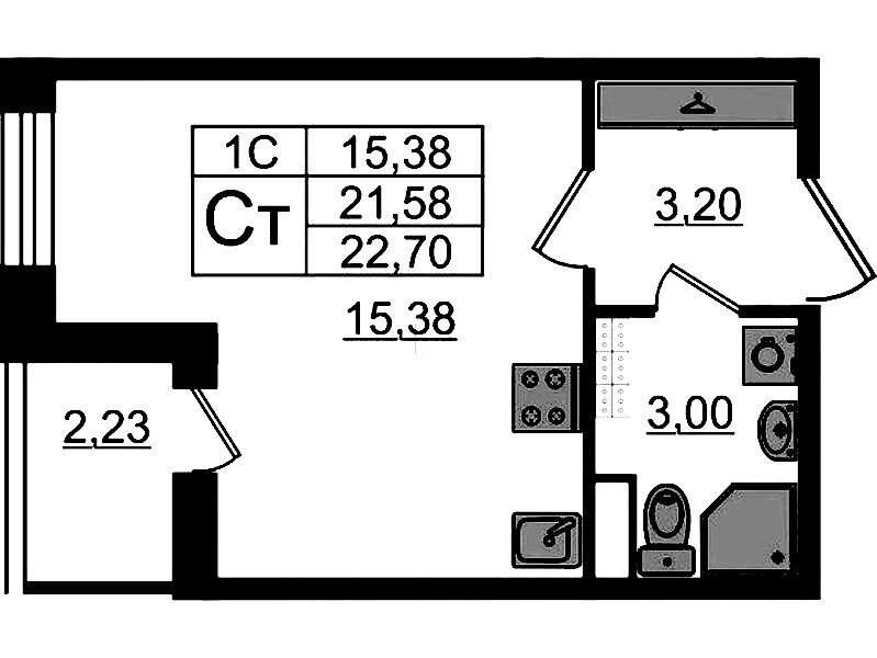 - Площадь21,58 м2