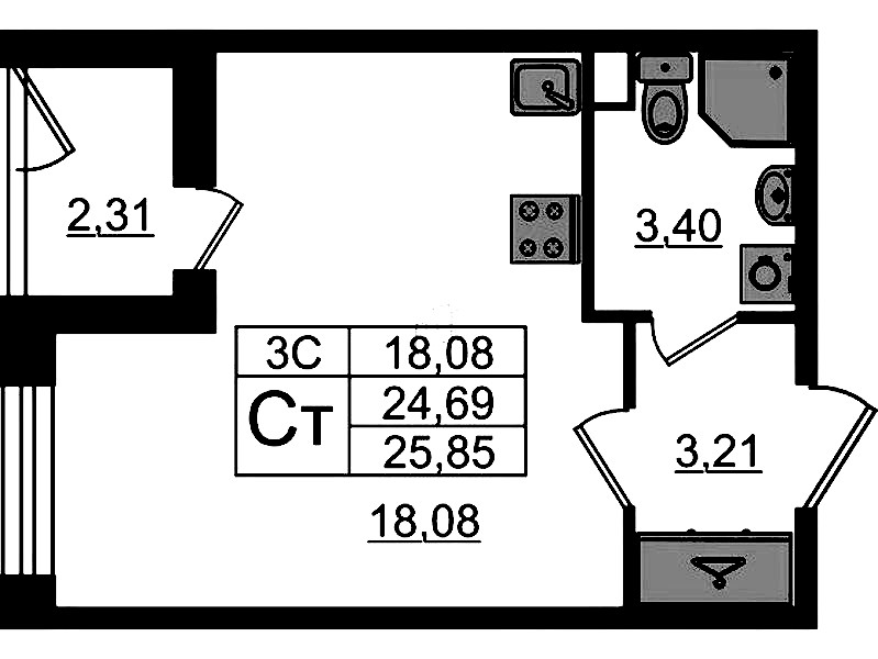 • Площадь24,69 м2