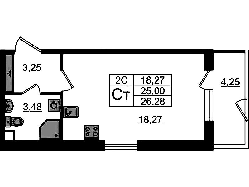 • Площадь25 м2