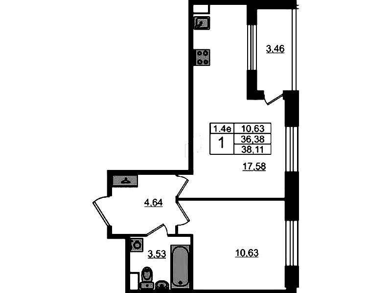 • Площадь кухни17,58 м2