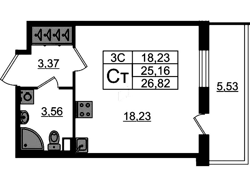 Квартира-студия на 2-ом этаже 25,16 кв.м