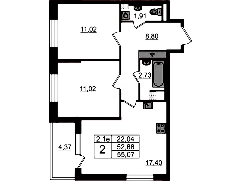 - Площадь52,88 м2