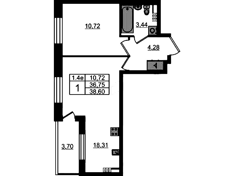 • Площадь кухни18,31 м2