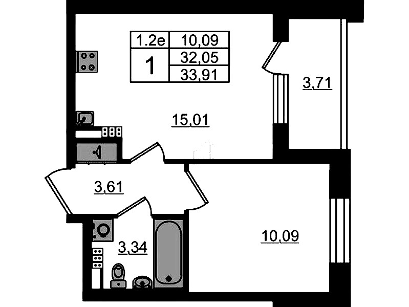 Однокомнатная квартира на 5-ом этаже 32,05 кв.м