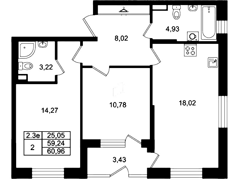 Двухкомнатная квартира на 1-ом этаже 59,24 кв.м