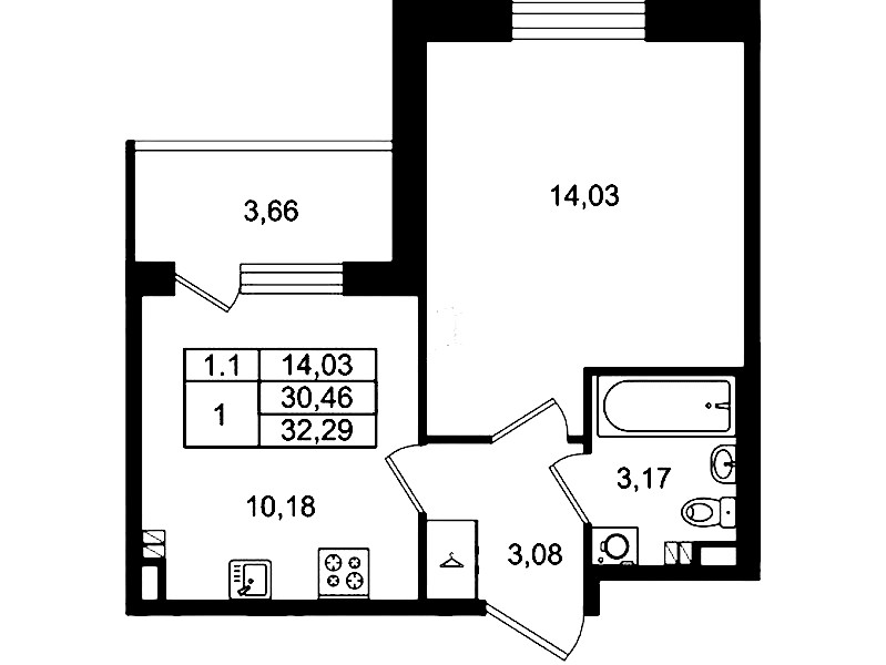 • Площадь30,46 м2