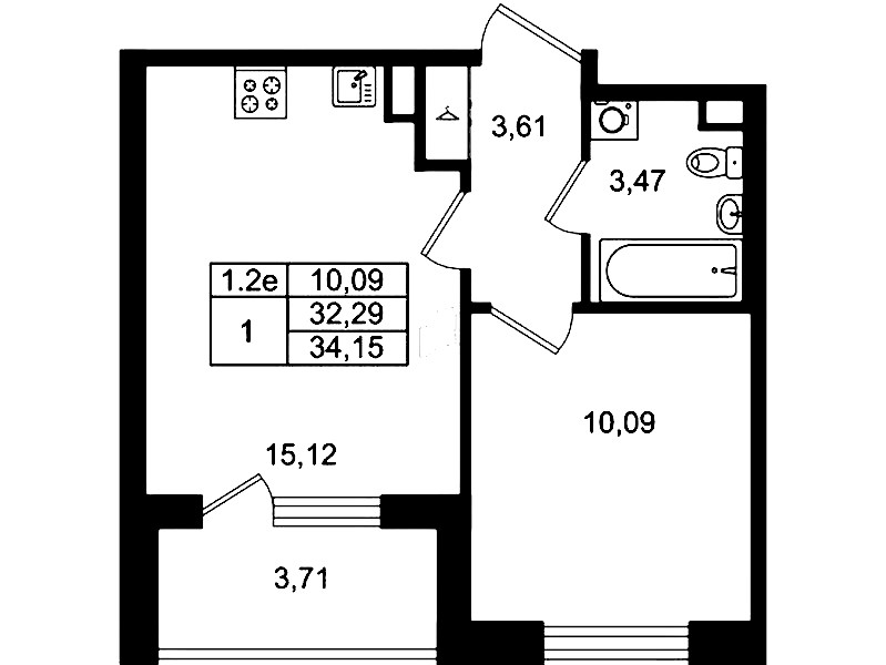 - Площадь кухни15,12 м2