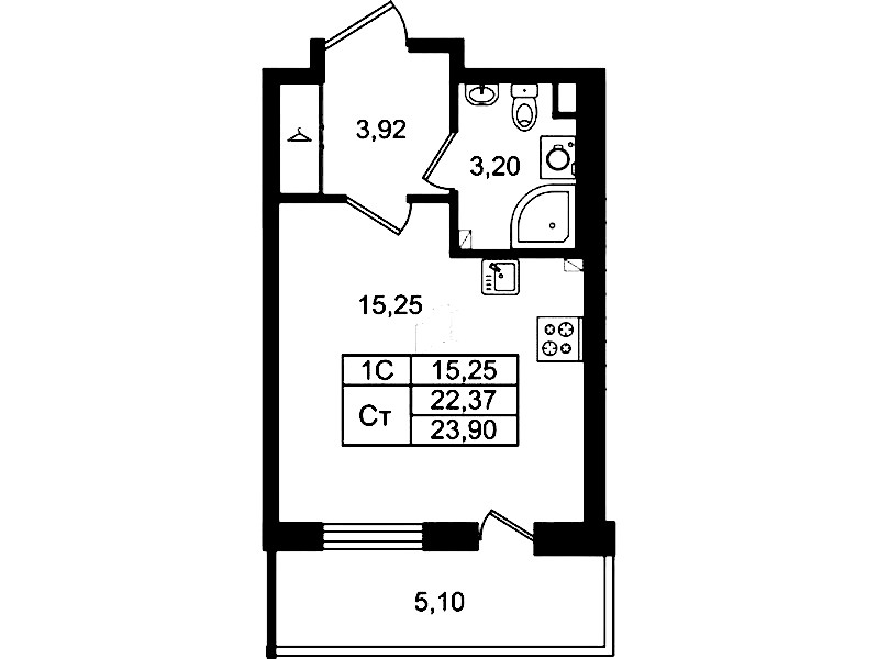 Квартира-студия на 3-ем этаже 22,37 кв.м