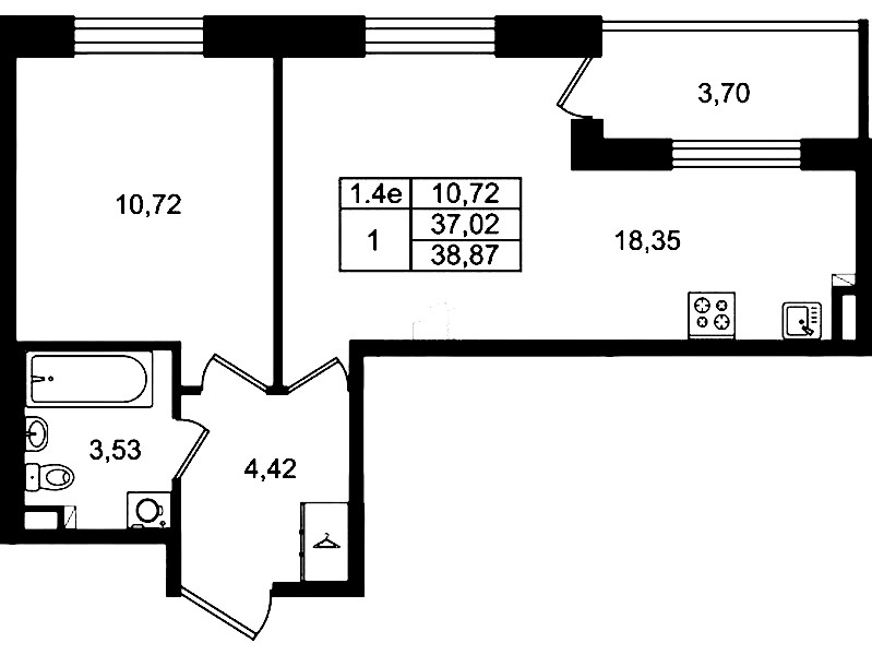 - Площадь37,02 м2