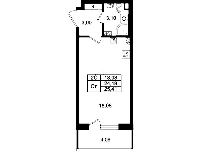 - Площадь24,18 м2