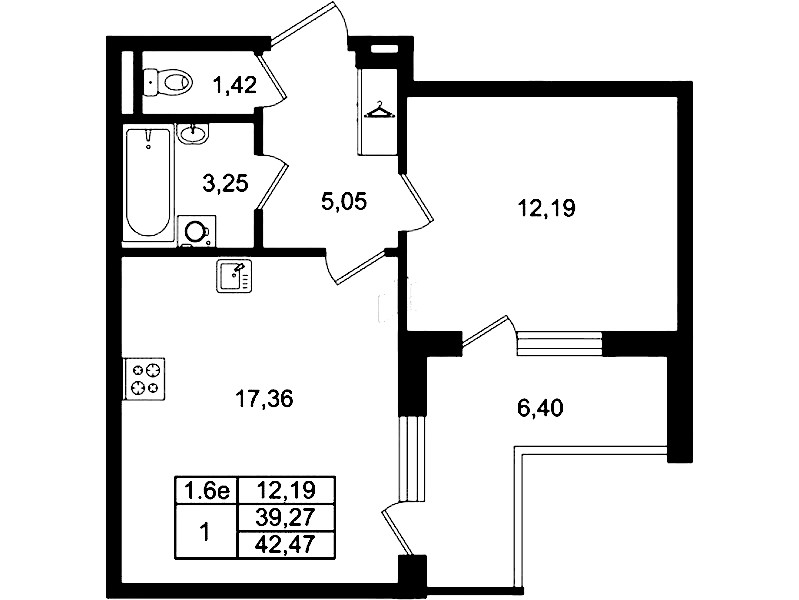 - Площадь39,27 м2