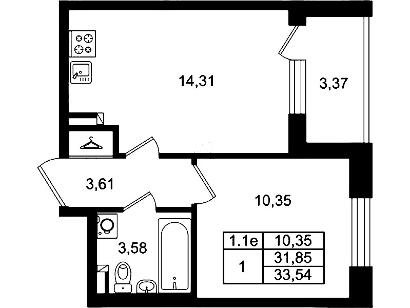 Однокомнатная квартира на 2-ом этаже 31,85 кв.м