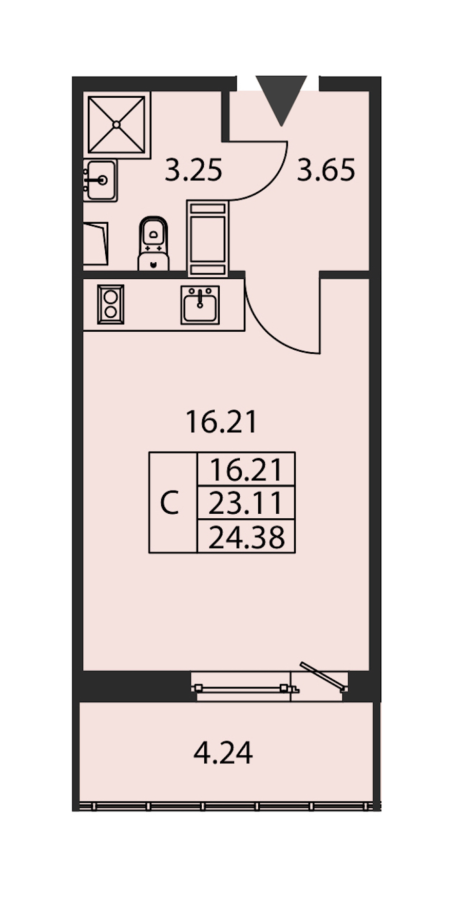 Квартира-студия на 3-ем этаже 23,11 кв.м
