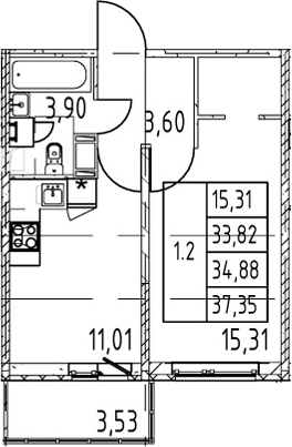 • Площадь кухни11,01 м2