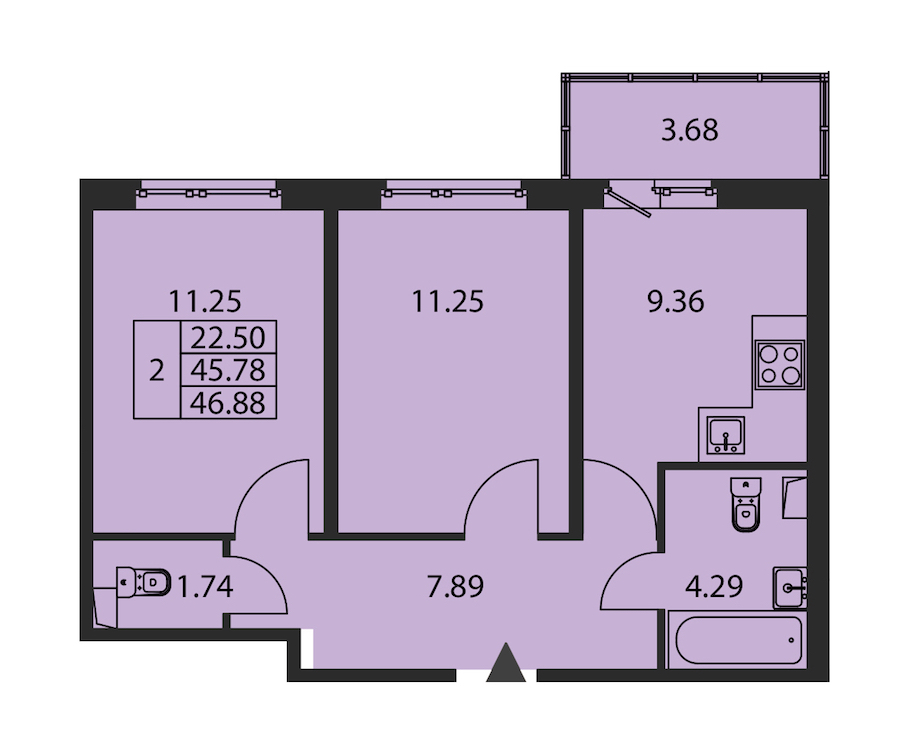 • Площадь45,78 м2
