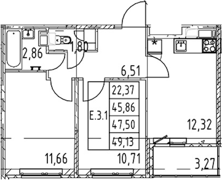 - Площадь45,86 м2