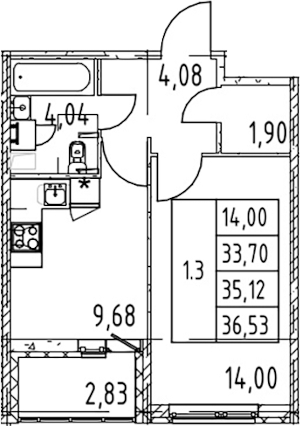 • Площадь33,7 м2