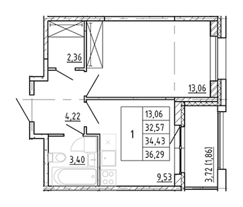 - Площадь32,57 м2