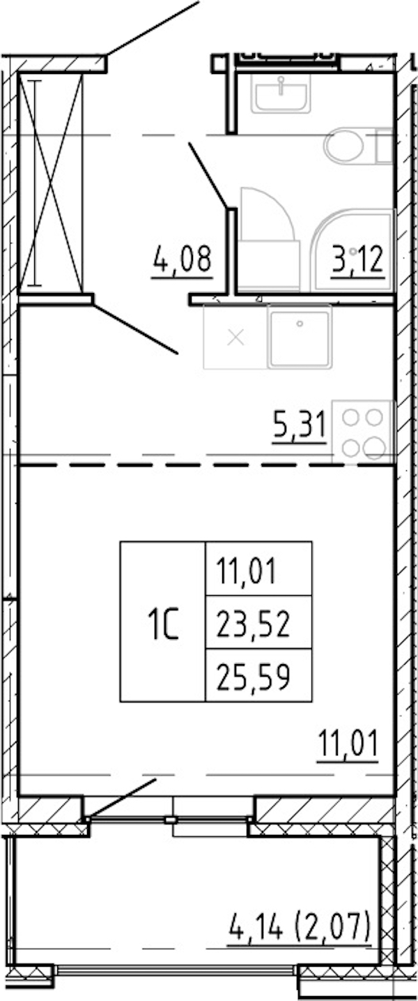 - Площадь23,52 м2