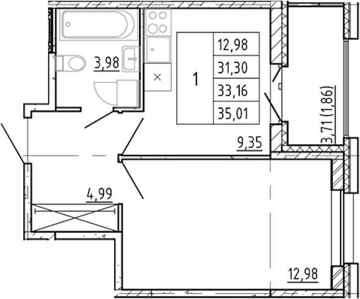 - Площадь31,3 м2