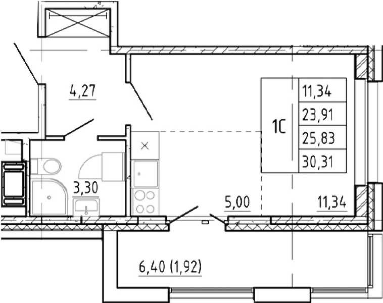 Квартира-студия на 3-ем этаже 23,91 кв.м