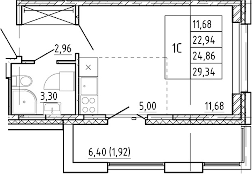 Квартира-студия на 9-ом этаже 22,94 кв.м
