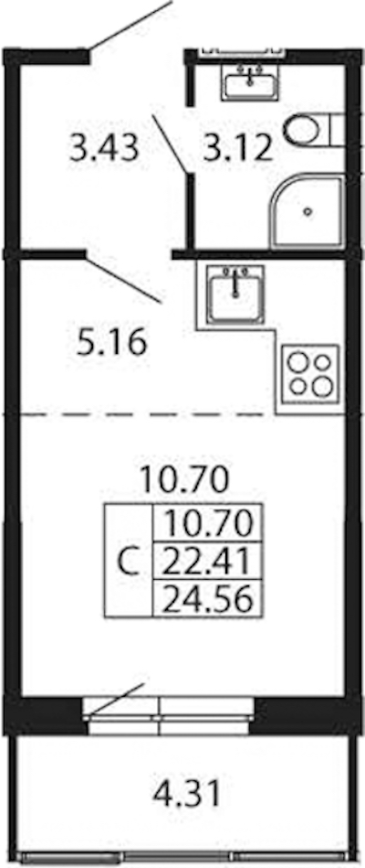 - Площадь22,41 м2