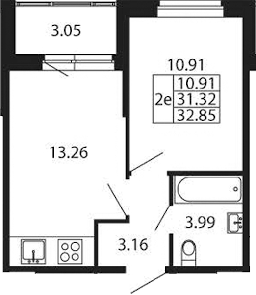 Однокомнатная квартира на 8-ом этаже 31,32 кв.м