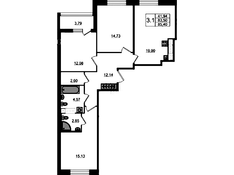 - Количество комнат3