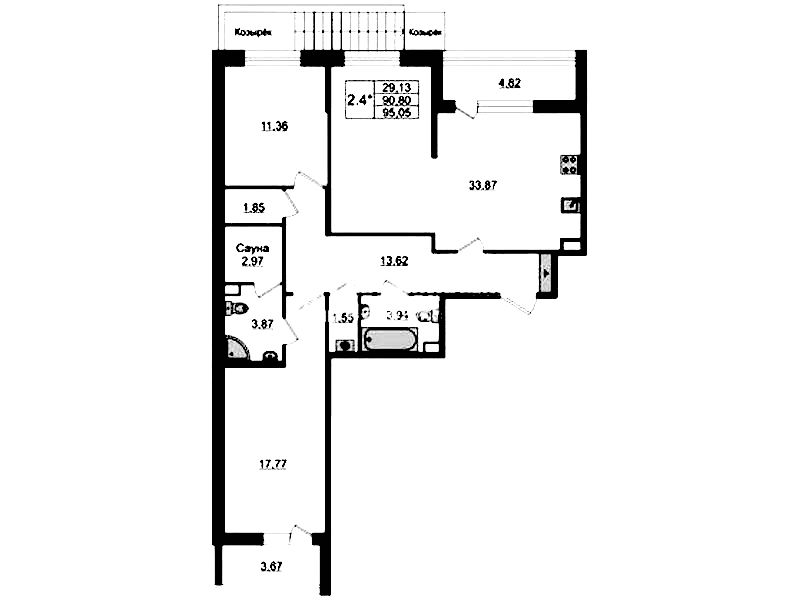 Двухкомнатная квартира на 1-ом этаже 89,1 кв.м