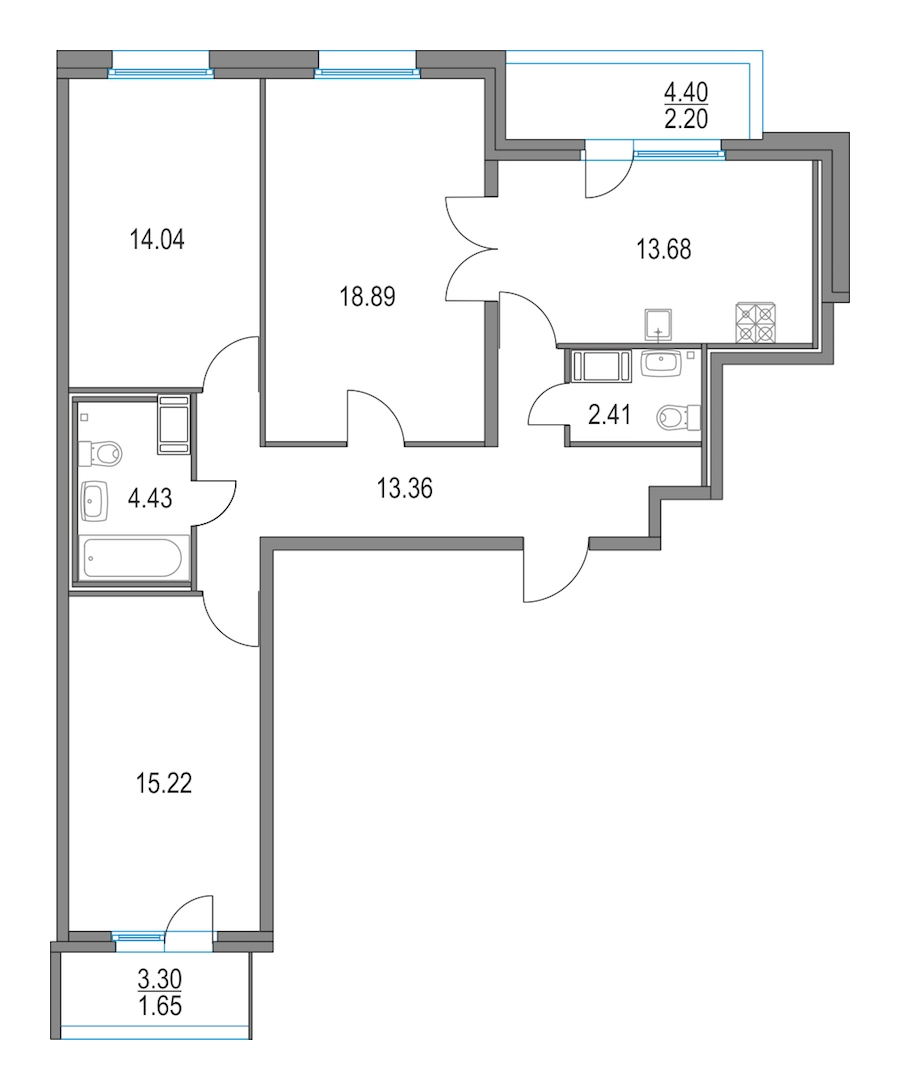 Трёхкомнатная квартира на 3-ем этаже 82,03 кв.м