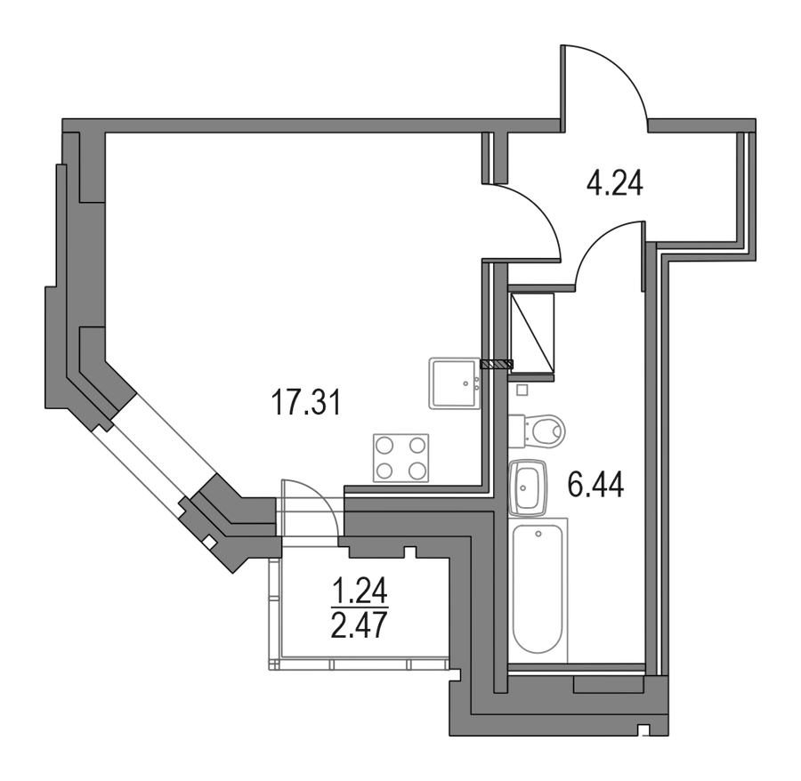 Квартира-студия на 16-ом этаже 27,99 кв.м