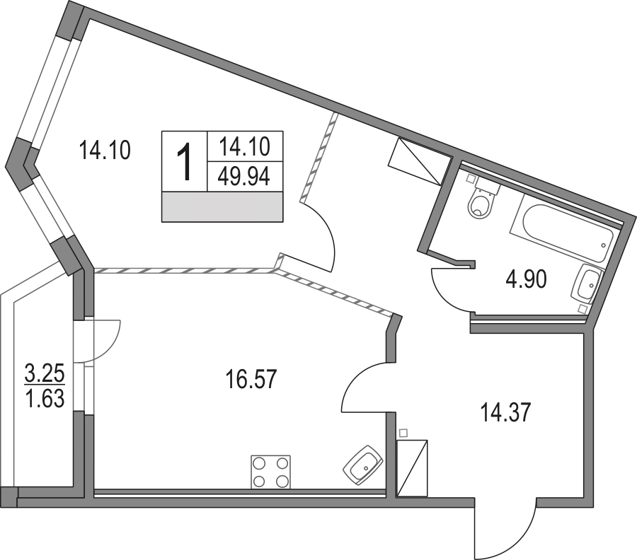 - Площадь51,57 м2