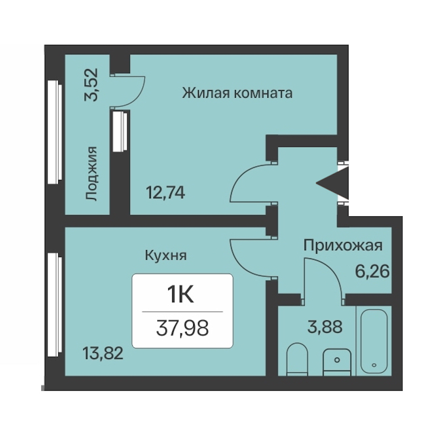 Однокомнатная квартира на 10-ом этаже 38,2 кв.м
