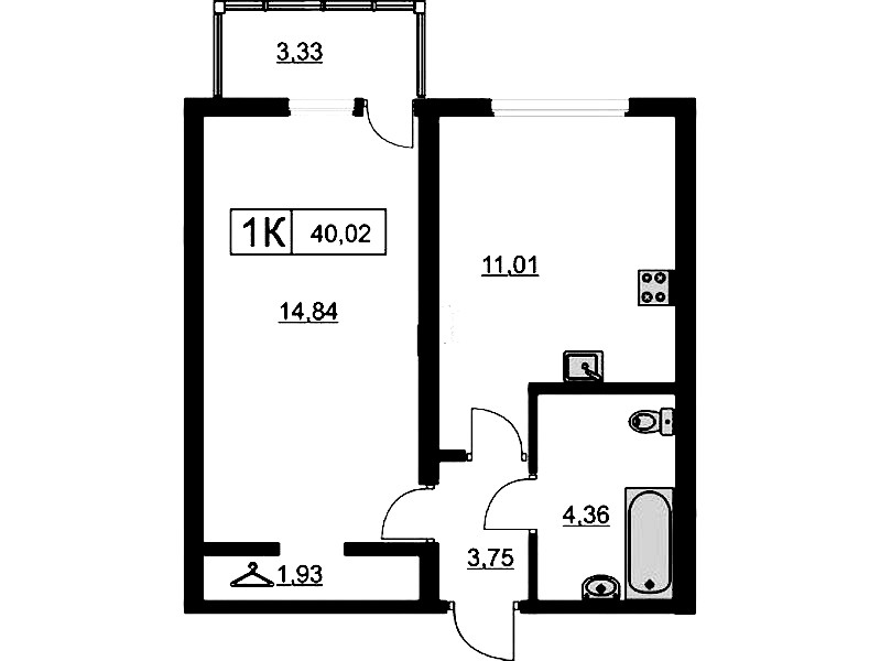 Однокомнатная квартира на 7-ом этаже 40,2 кв.м