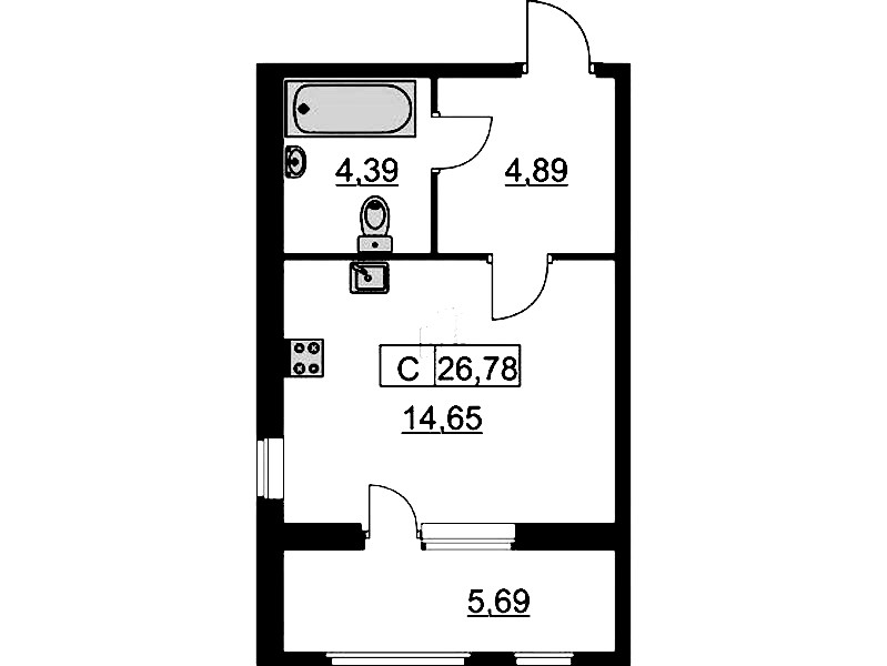 • Площадь26,8 м2