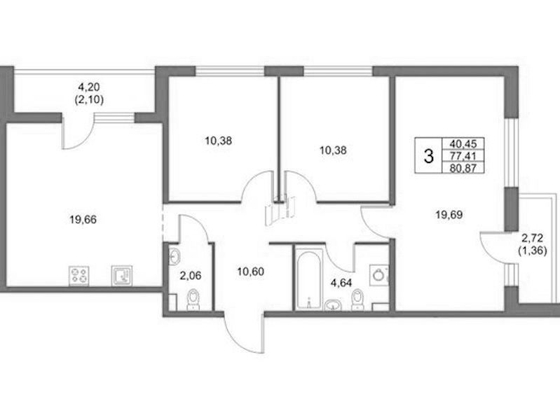 - Площадь80,87 м2