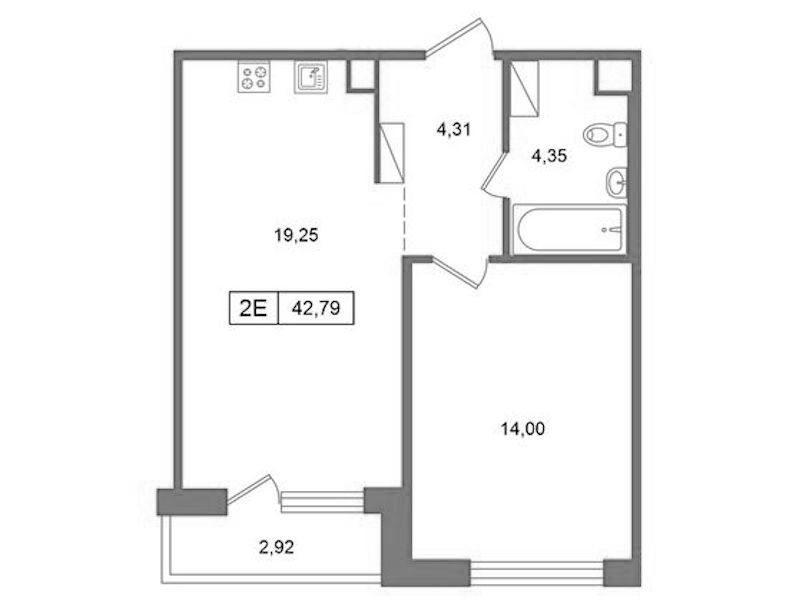 - Площадь42,79 м2