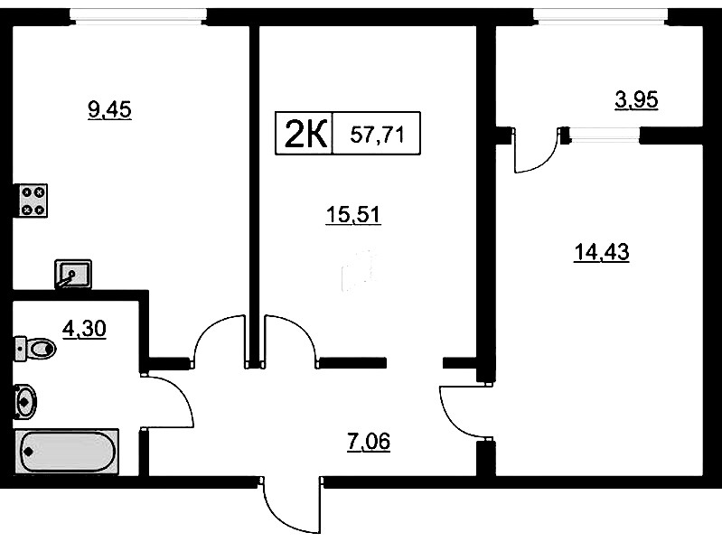 - Площадь57,3 м2