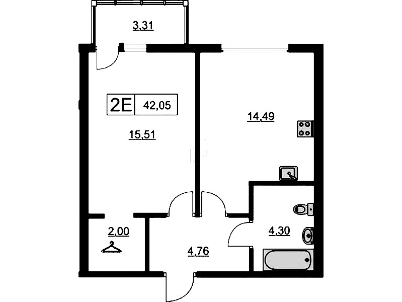 - Площадь41,5 м2