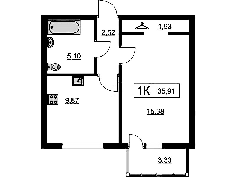 Однокомнатная квартира на 10-ом этаже 35,7 кв.м
