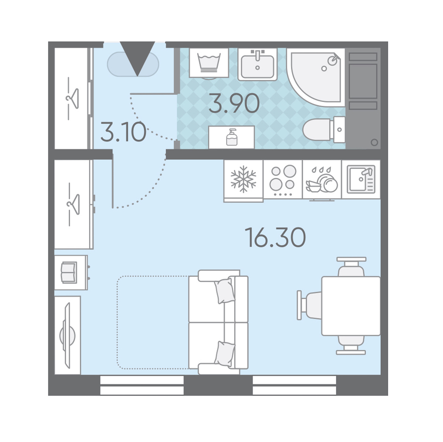 Квартира-студия на 13-ом этаже 23,3 кв.м
