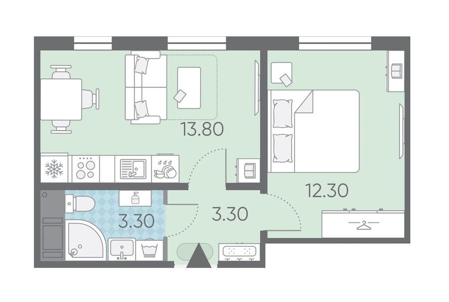 Однокомнатная квартира на 2-ом этаже 32,7 кв.м