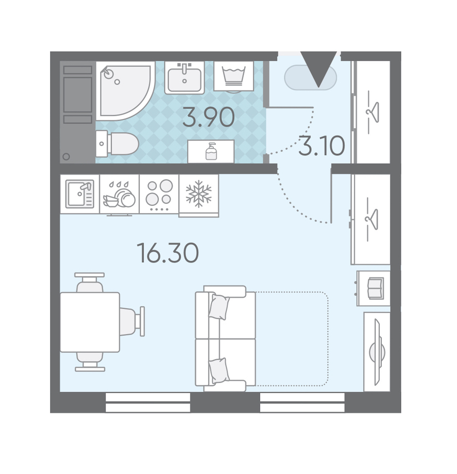Квартира-студия на 12-ом этаже 23,3 кв.м